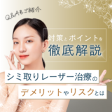 【リスク・副作用等】施術後、一時的に赤み、腫れ、熱感、ヒリヒリ感、軽度の痛みが生じることがあります。照射部位のシミやそばかすが一時的に濃く浮き上がり、かさぶたや薄い痂皮を形成する場合がありますが、数日から1週間程度で自然に剥がれ落ちます。まれに、水疱、やけど、色素沈着、色素脱失、炎症後色素沈着が生じる可能性があります。 ※症状には個人差があります。